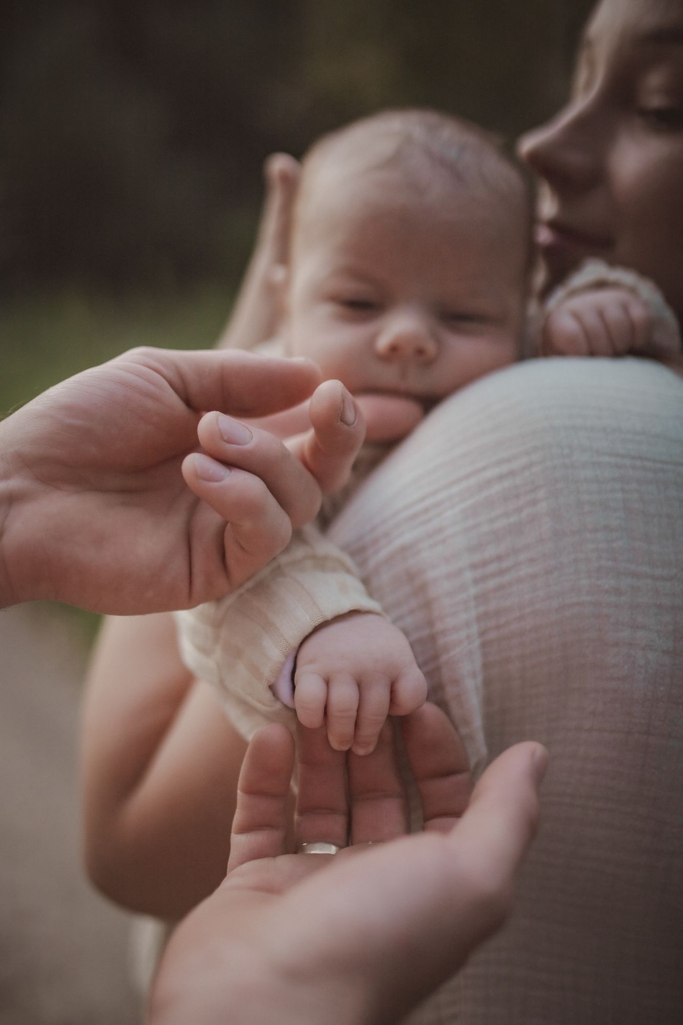 Sesja noworodkowa w plenerze, okolice Jonkowa, 2024 r.